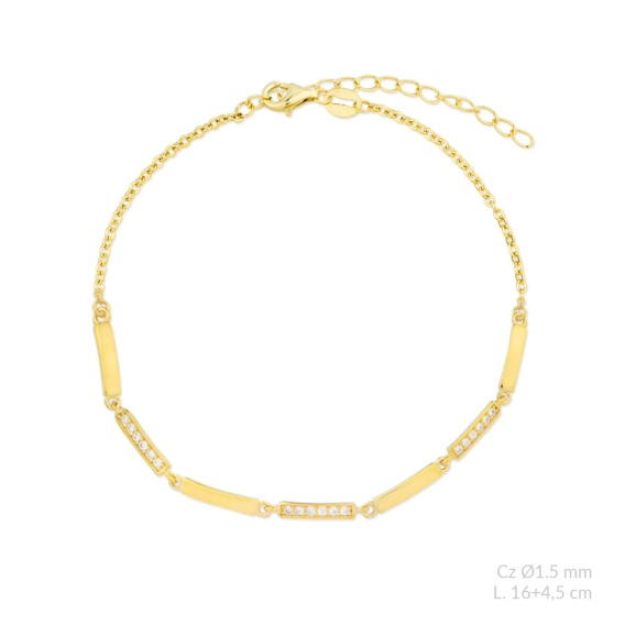 Bransoletka srebrna pr.925 z cyrkoniami pokryta 24-karatowym złotem
