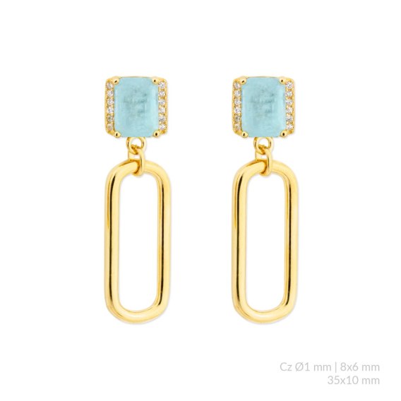 Kolczyki srebrne pr.925 z kwarcem pokryte 24-karatowym złotem