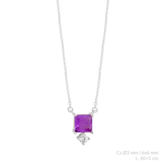 Naszyjnik srebrny pr.925 z kwarcem pokryty rodemDługość: 6x6/40+5cm