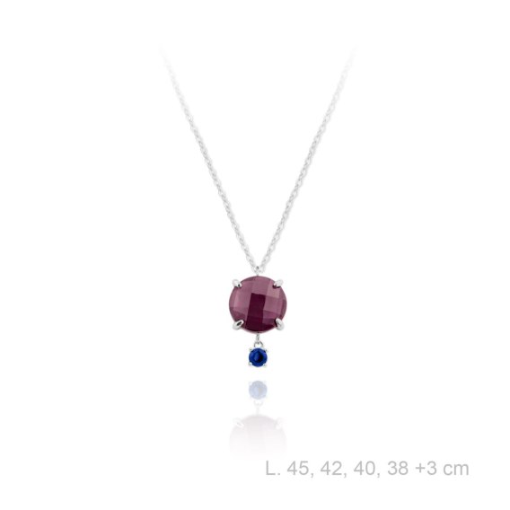 Naszyjnik srebrny pr.925 z ametystowymi i szafirowymi cyrkoniami pokryty rodem