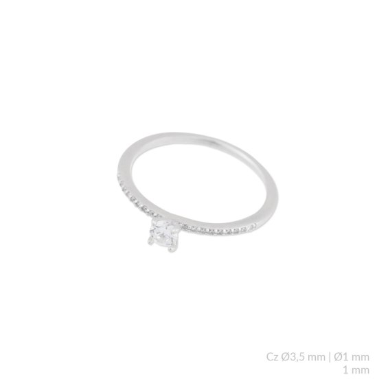 Pierścionek srebrny pr.925 z cyrkonią pokryty rodem.